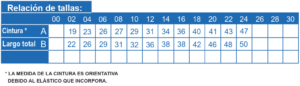 | Talla | 00, 02, 04, 06, 08, 10, 12, 14, 16, 18, 20, 22, 24, 26, 28, 30 |