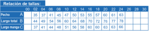 | Tallas | 00, 02, 04, 06, 08, 10, 12, 14, 16, 18, 20, 22, 24, 26, 28, 30 |